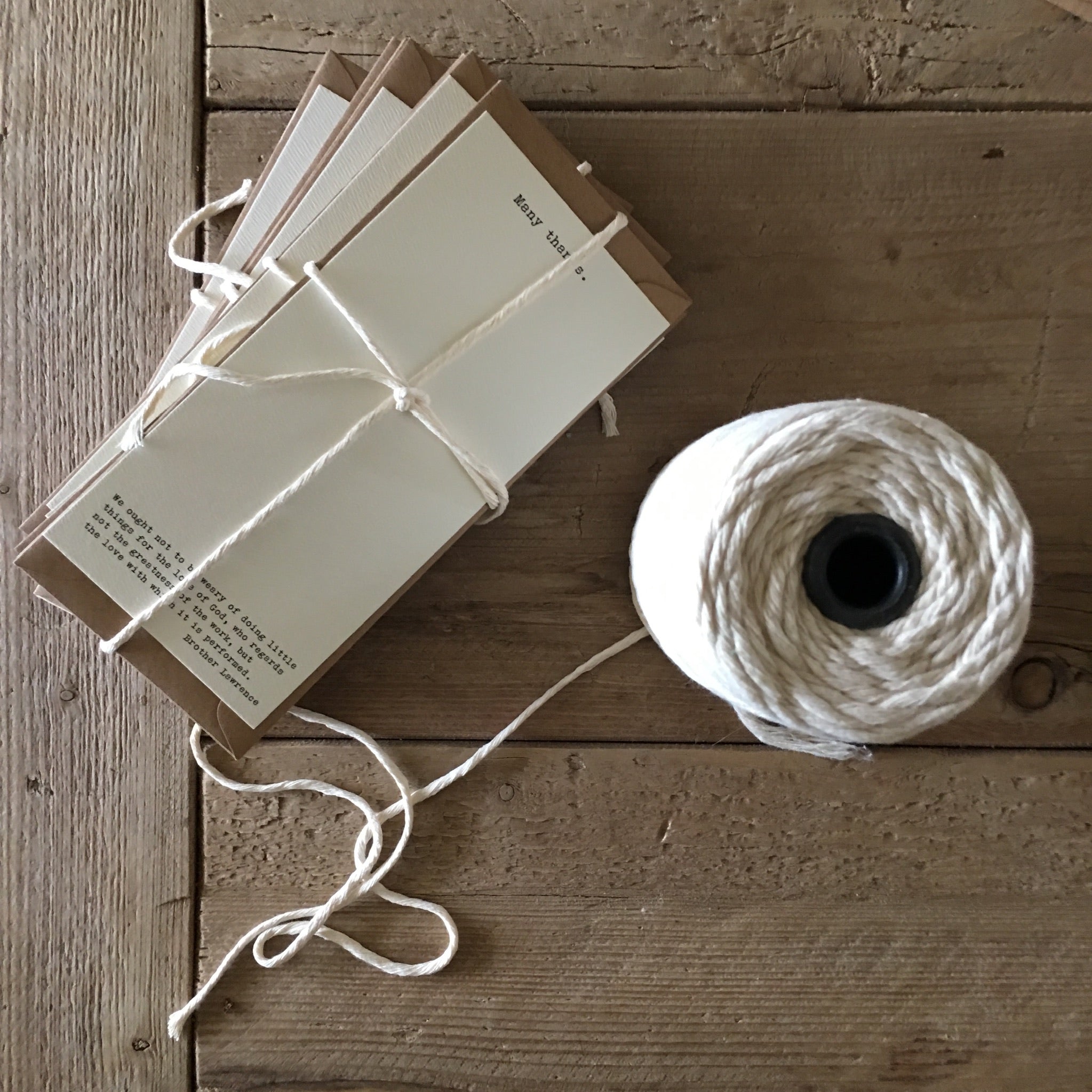 8 1/2 x 4 inches, flat card, 100# felt cover, cream; with grocery bag style A7 envelope