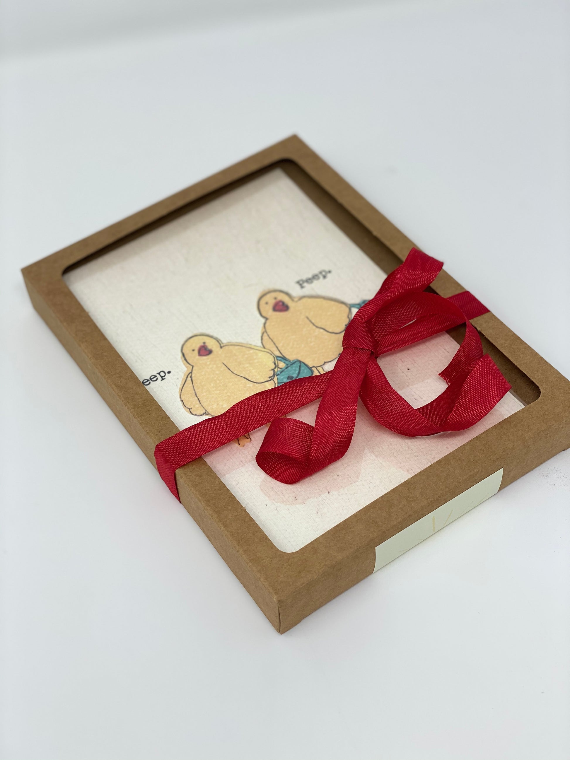 This 12-card set features three different flat cards on heavy stock felt matte. Perfect for Valentine's Day, birthdays, or any day you want to give a little lift to your friend or loved one, these cards are sure to become a staple in your stationery drawer.