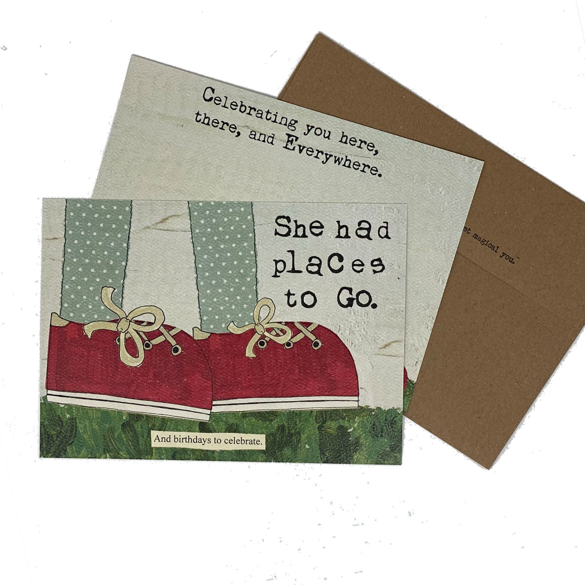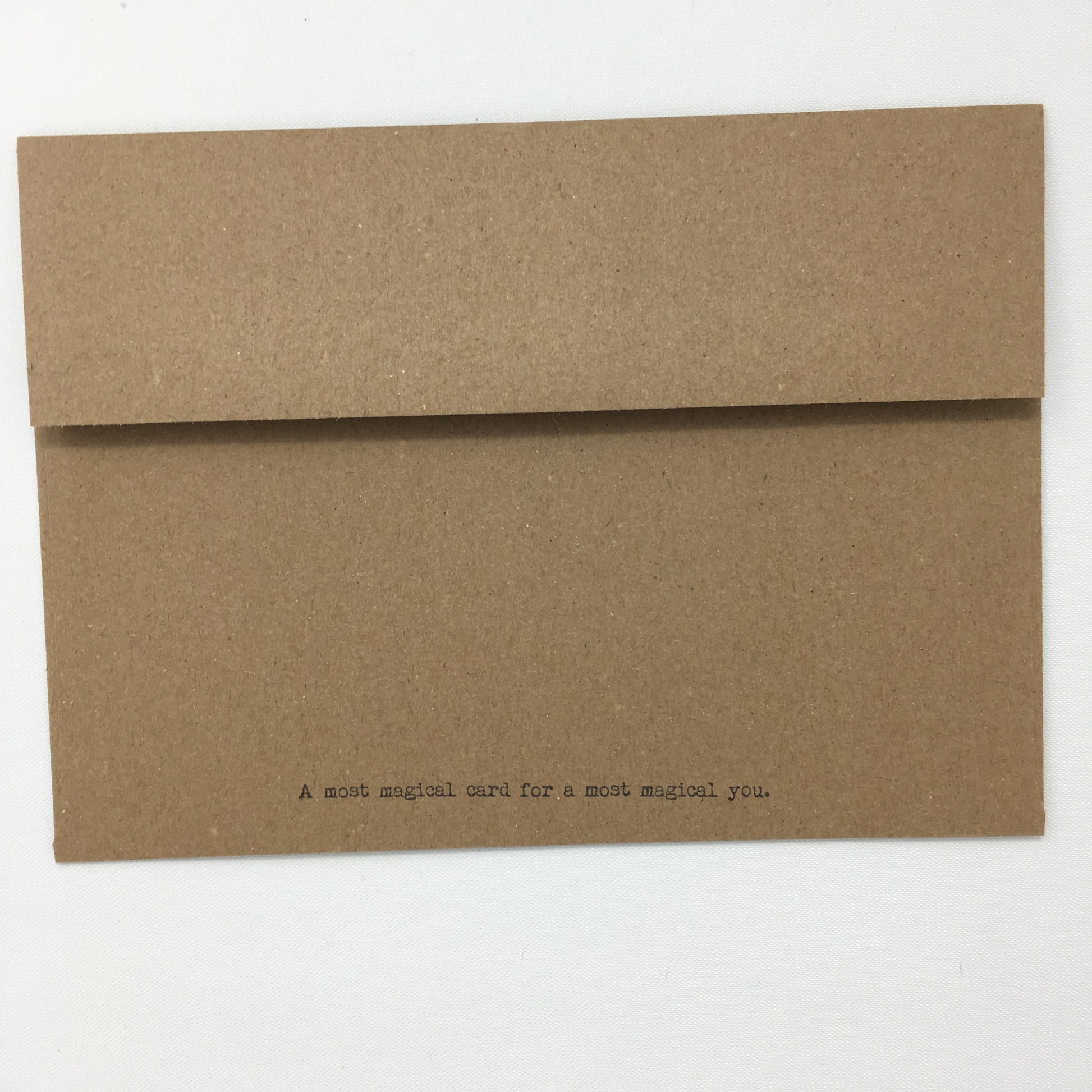 5 x 7 flat card, #100 pound felt cover/ Comes with a grocery-bag style envelope.
