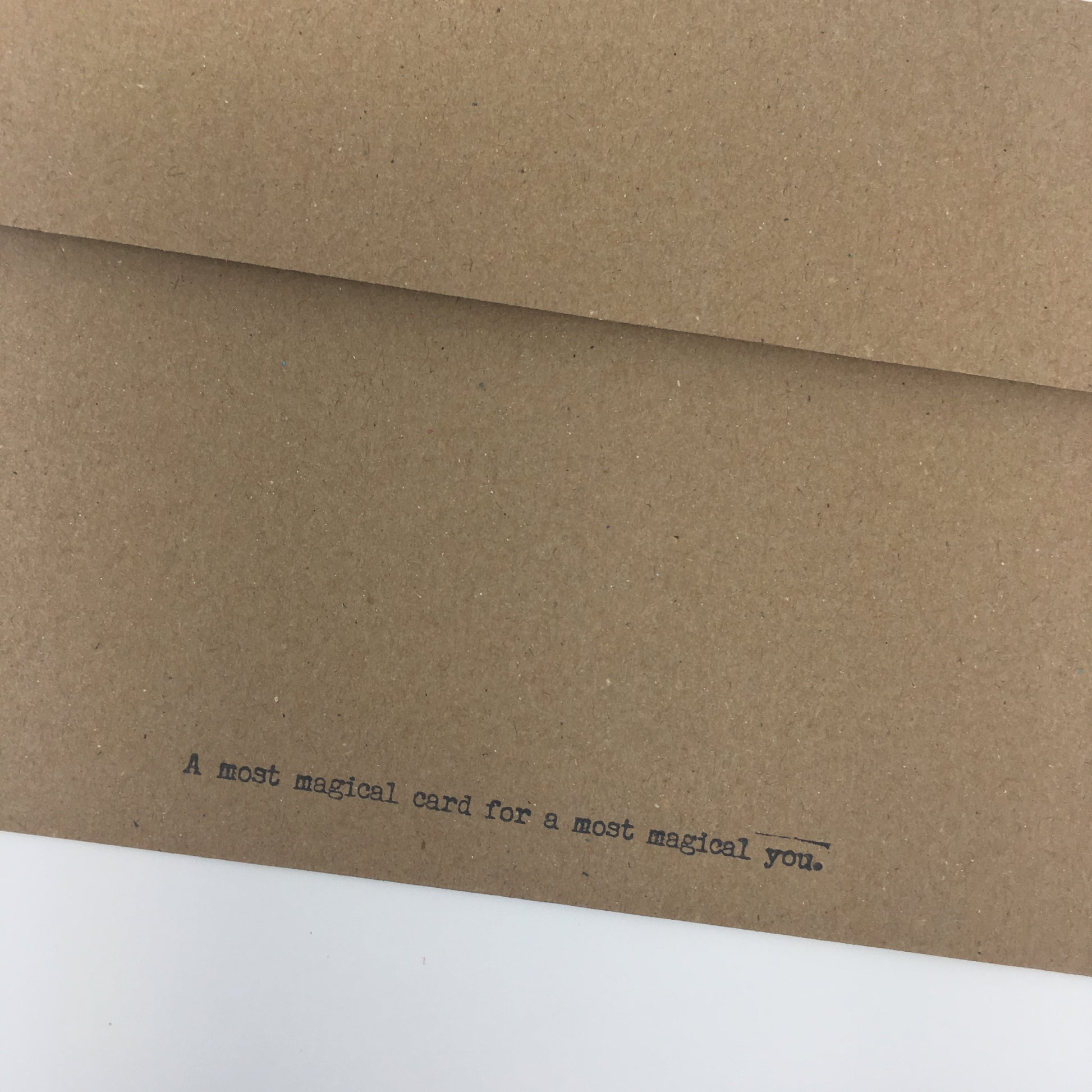 5 x 7 flat card, #100 pound felt cover/ Comes with a grocery-bag style envelope.